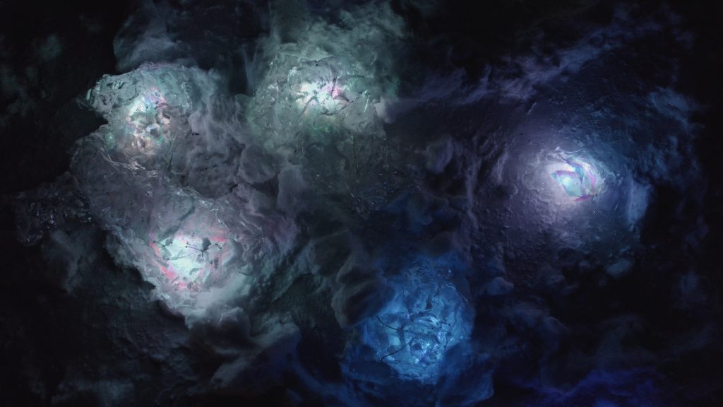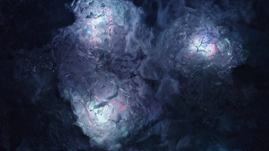 “Glitsteinar” emerges as a floating audiovisual installation, shedding light on the pervasive issue of ocean plastic pollution. Plastic, now an integral element of the marine ecosystem in the form of microplastics, floating plastic islands, or plastiglomerates, serves as both inspiration and medium in this surreal installation.