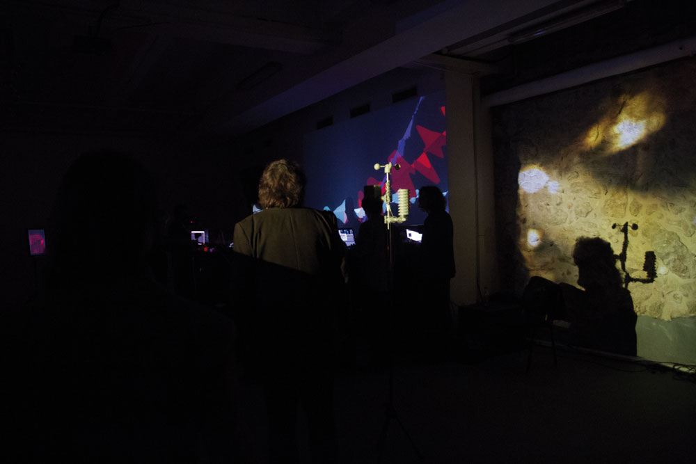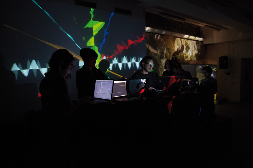 It’s a visual generative Max/Msp/Jitter patch working in realtime in a live jam performance for 8 live electronics players.